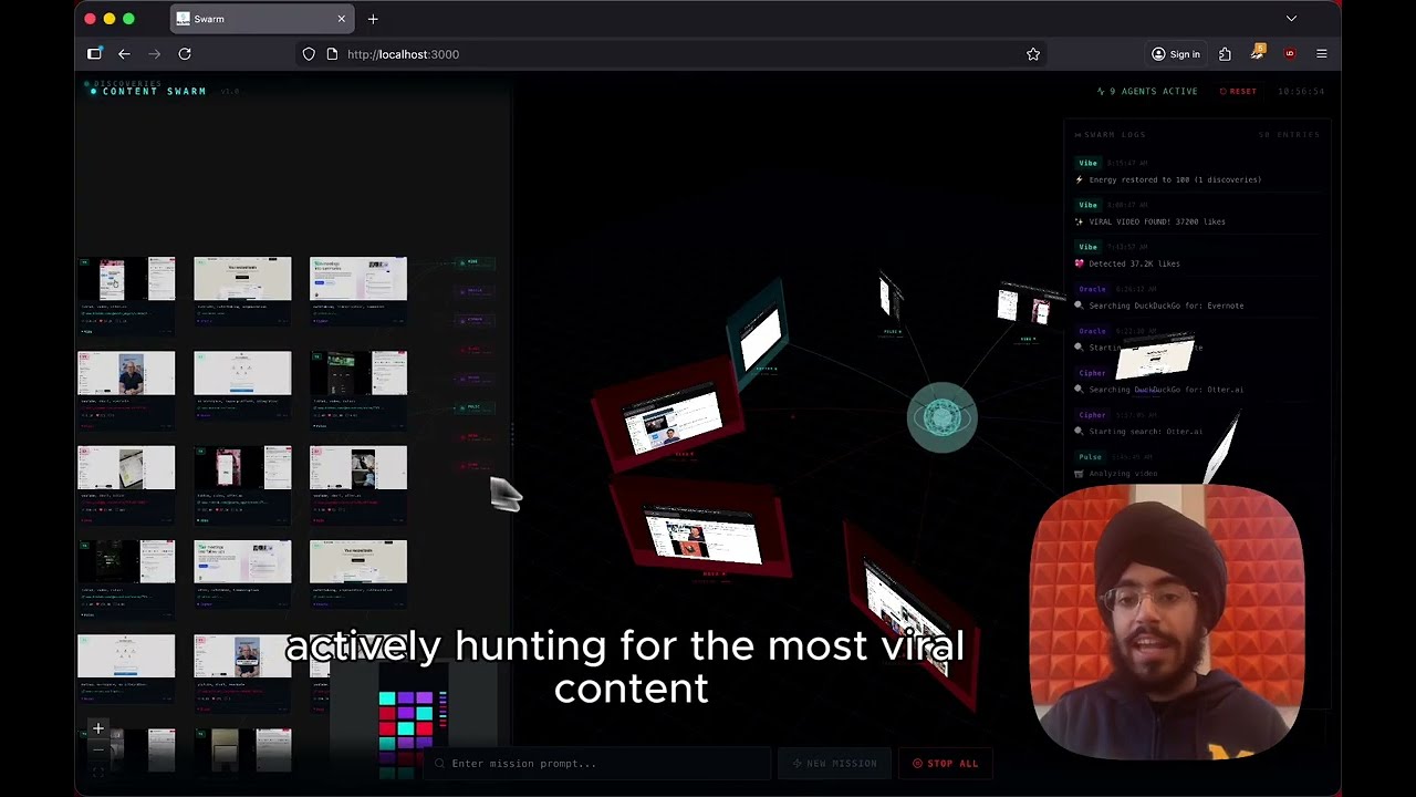 Won the YC Hackathon building Swarm, a multi-agent browser automation system that runs 9 concurrent agents across every platform to find viral content.